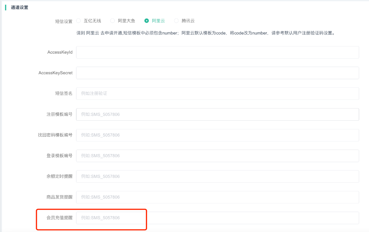 (一)余额充值短信提醒设置(不支持批量充值,因为批量充值走的不是充值接口)